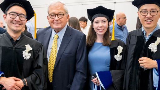 Louis V. Gerstner, Jr. with students at the 2025 Gerstner Sloan Kettering Graduate School of Biomedical Sciences (GSK) convocation and commencement.